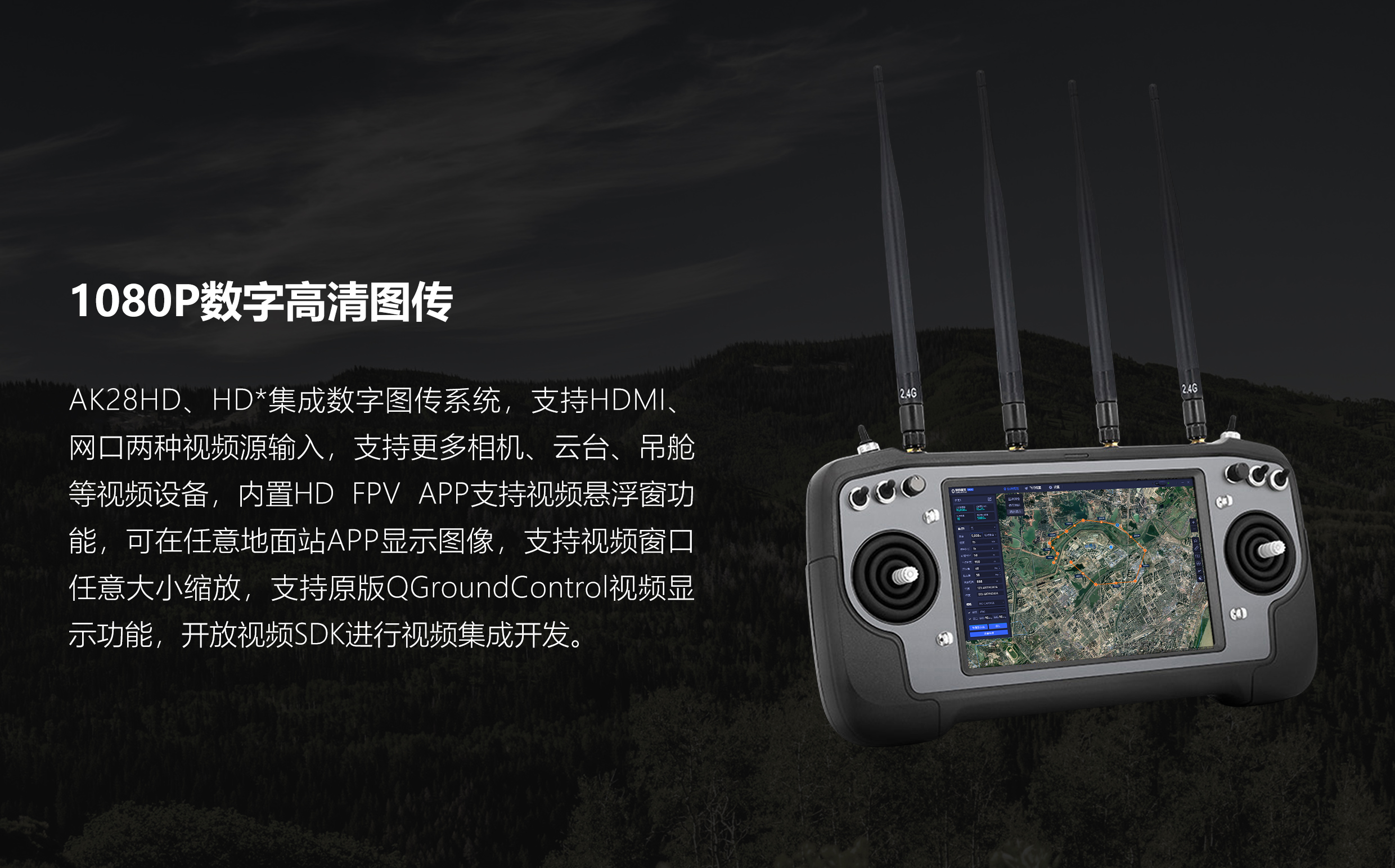 为了让您看的更远、更清晰,XR-GCS/PAD再次解决技术难题,集成1080P高清图传系统,采用先进的跳频技术以及抗干扰射频算法,让您无需担忧飞行距离,该地面站天空端采用航天材质加工而成,配置网口/HDMI接口,支持更多视频输入设备,XR-GCS/PAD无论用于行业飞行还是视频直播,都能得心应手,让你获得亲临现场的体验。