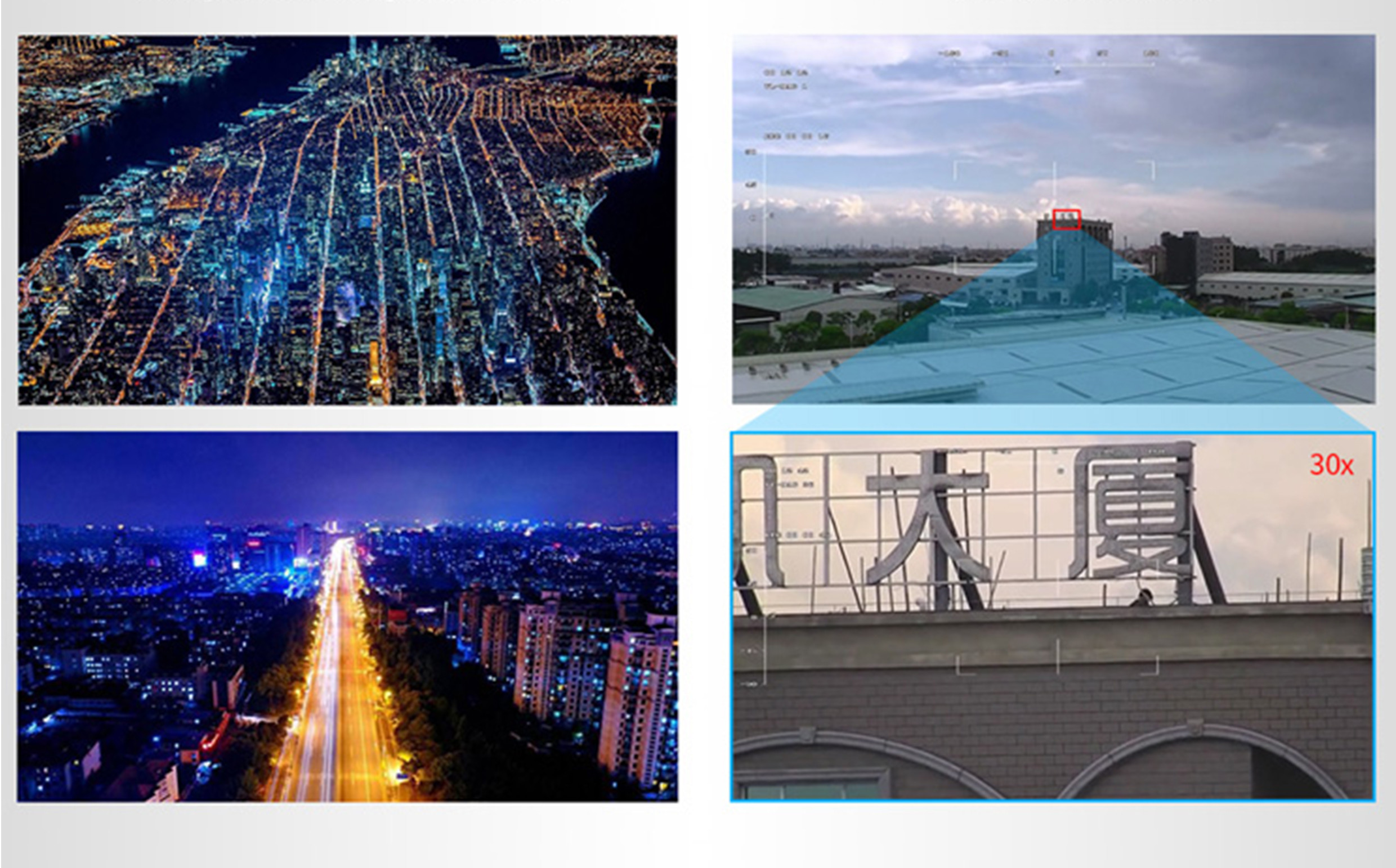采用SONY1/2.8 ExmorR CMOS模块,具有0.01lux@F1.6星光级最小照度,XR-X30IN仍可在极弱的光不境下清晰显示图像特征。2.13兆有效像素和1080p高清图像质量,结合30倍光学变焦技术。观测范围可达500米,可满足各个领或的应用需求。